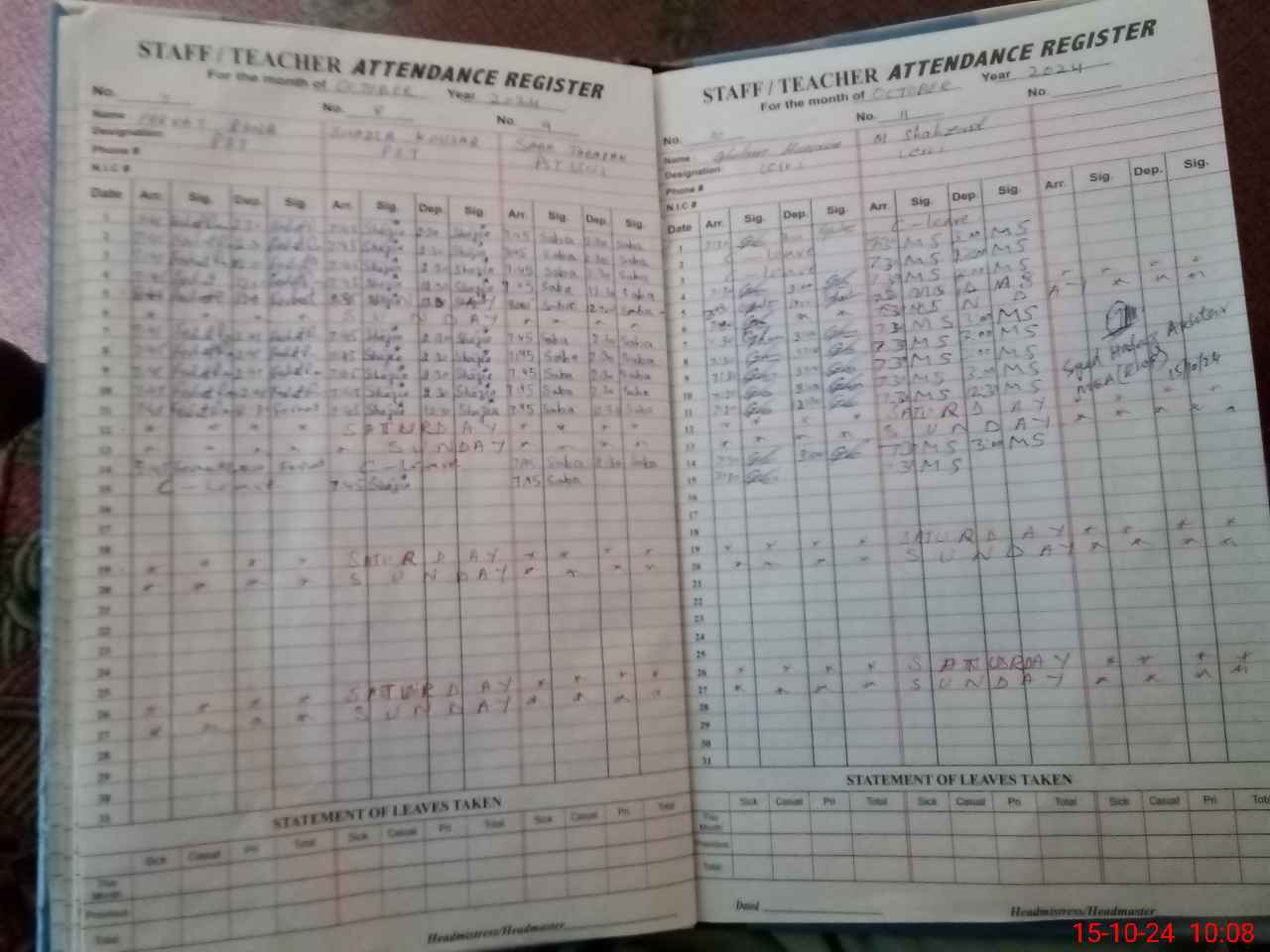 | Leave | Duty | Absent | Maternity | Medical | Ex- Pak |