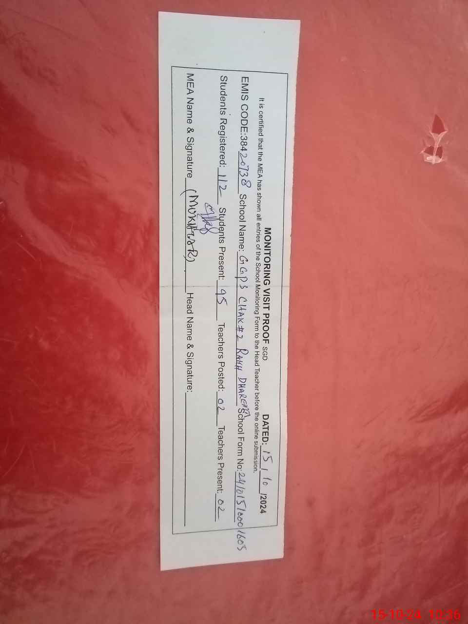 | EMIS Code: 38420738 | Name of School: GGPS CHAK NO.2 RAKH DHAREMA | |||