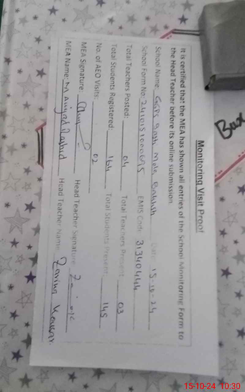 | Certified that this School was Inspected by the Undersigned MEA/DMO Today and the Information Stated Above is as Per Record. | |||||