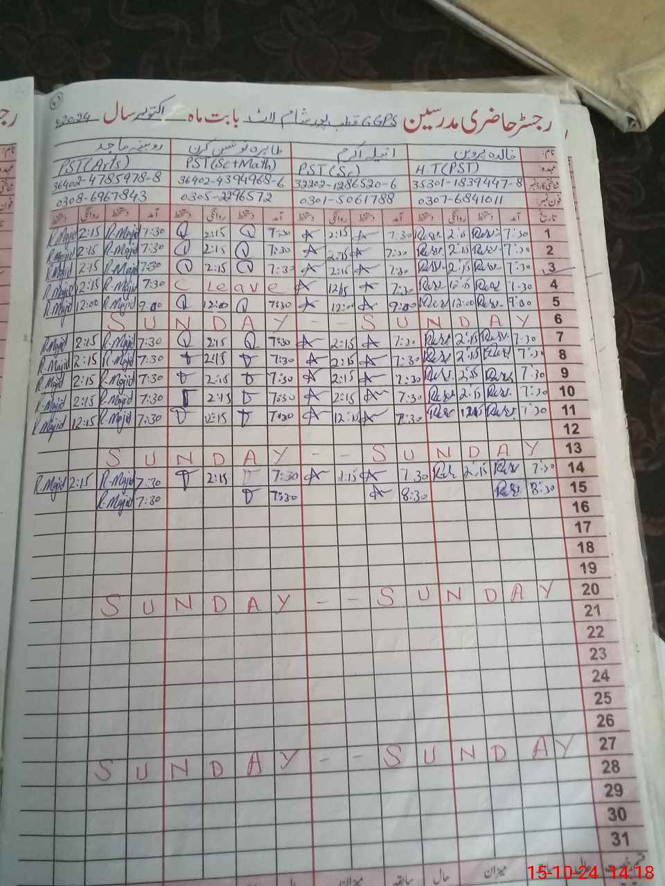 | CNIC | Full Name | Designation | R/C | Absence During Last Calender Month |