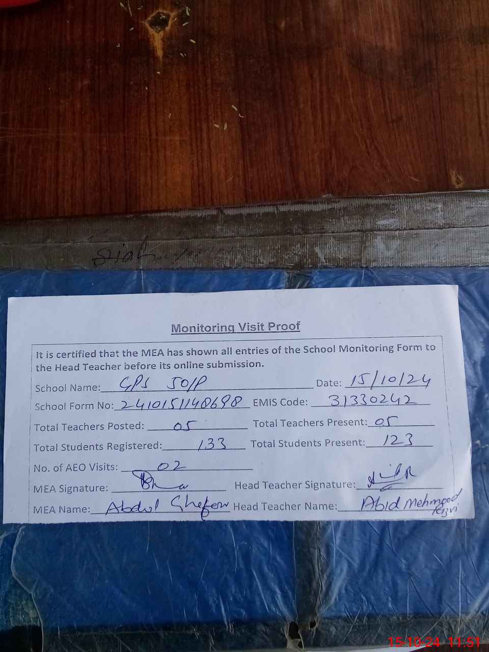 | EMIS Code: 31330242 | Name of School: GPS CHAK 50/P | |||