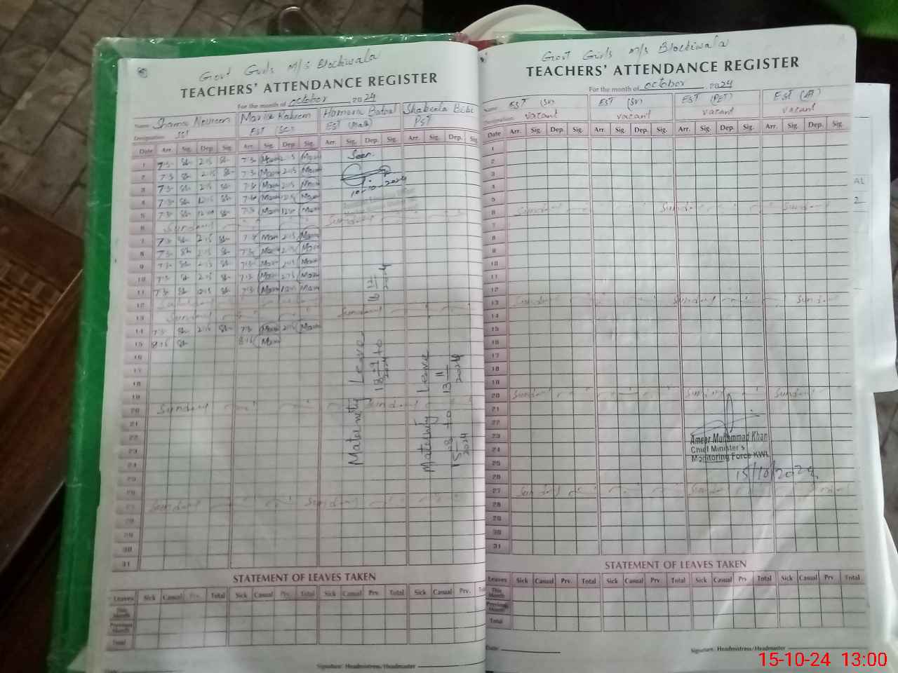 | 36**** | Sh**** Bi**** | PST | Regular | 30 | 0 | 0 | 30 | 0 | 0 | 0 | 0 | 0 | Maternity |