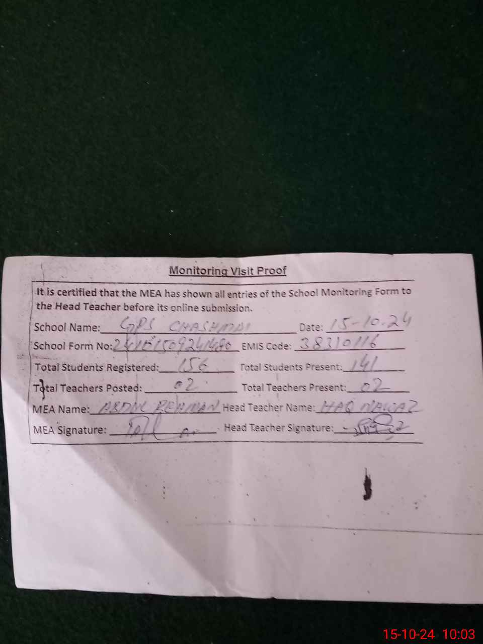 | EMIS Code: 38310116 | Name of School: GPS CHASHMAI | |||