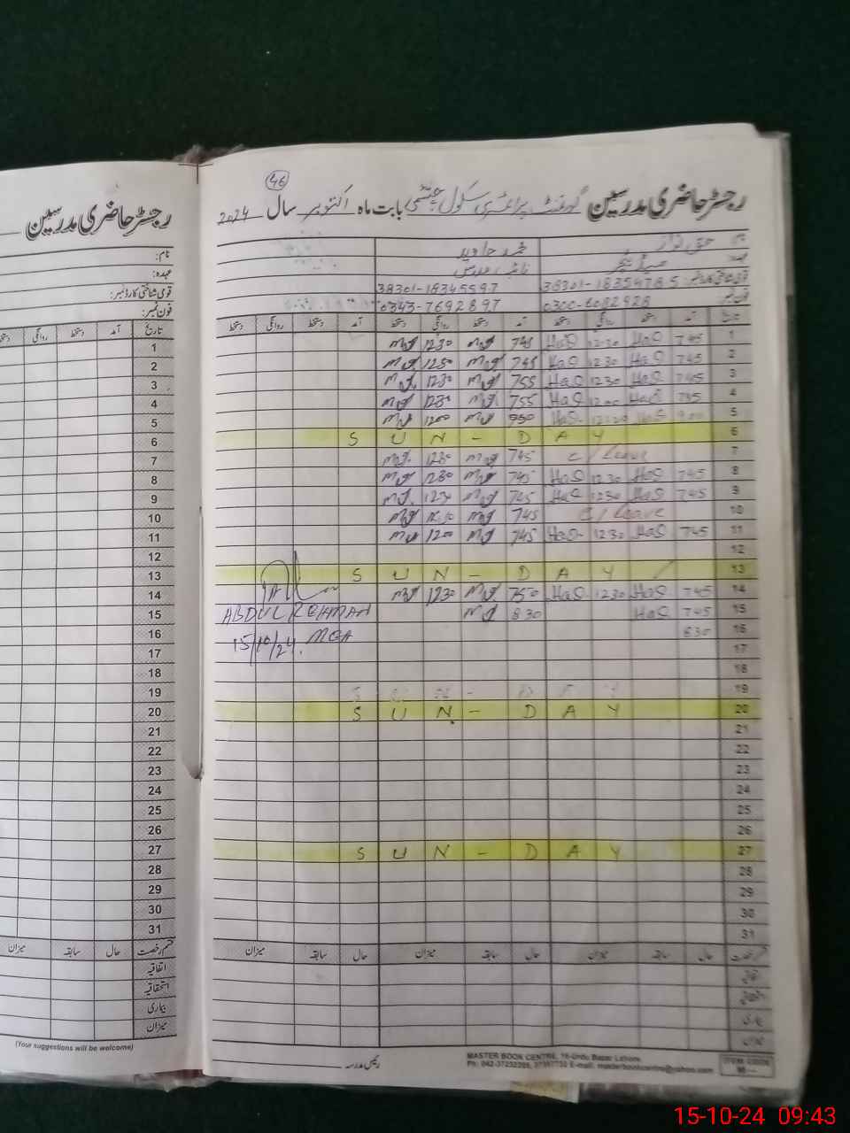 | Name: HA**** NA**** Designation: (School Headmaster's/Headmistress's) HEADMASTER Phone/Cell Number: 03**** |