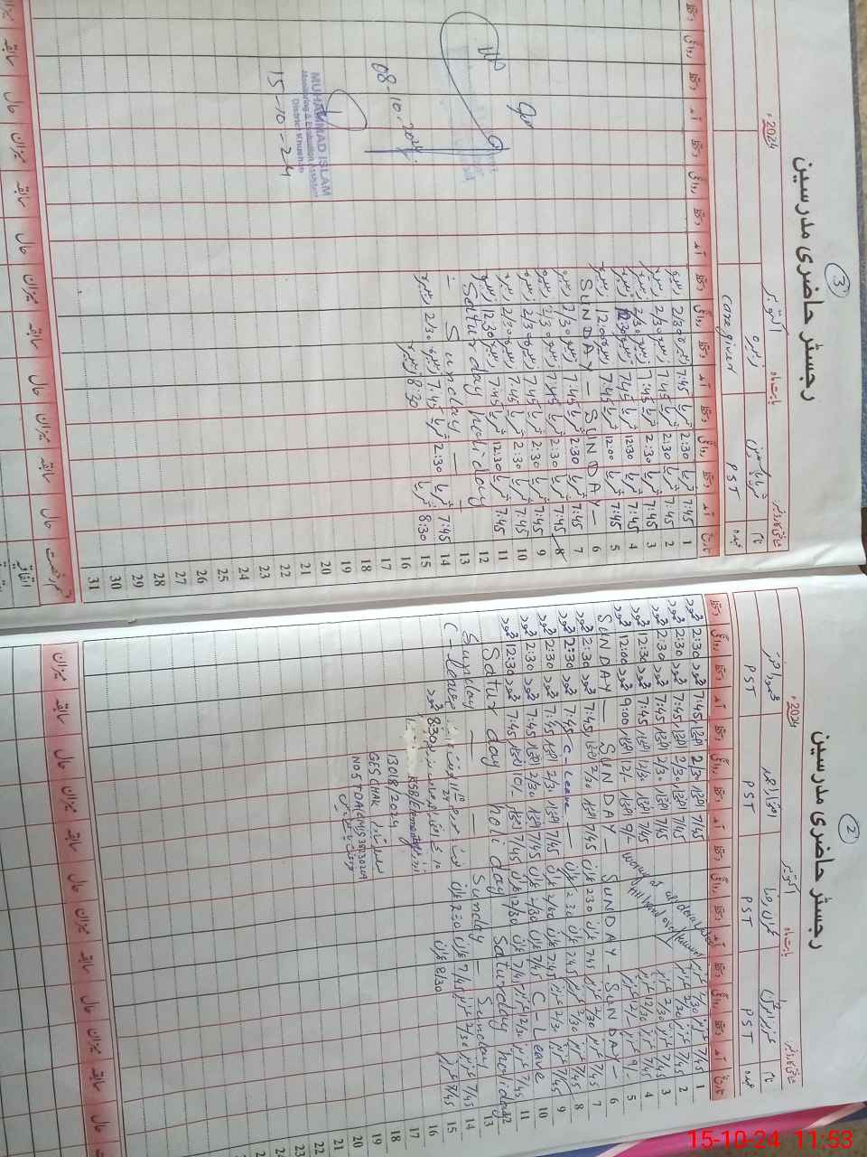 | CNIC | Full Name | Designation | R/C | Absence During Last Calender Month |