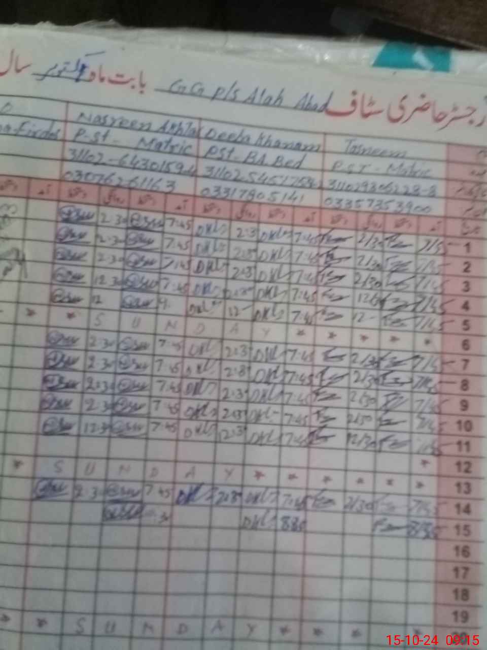 | District: BAHAWALNAGAR | Tehsil: CHISHTIAN | Markaz: FEMALE-18 | Level: Primary | |