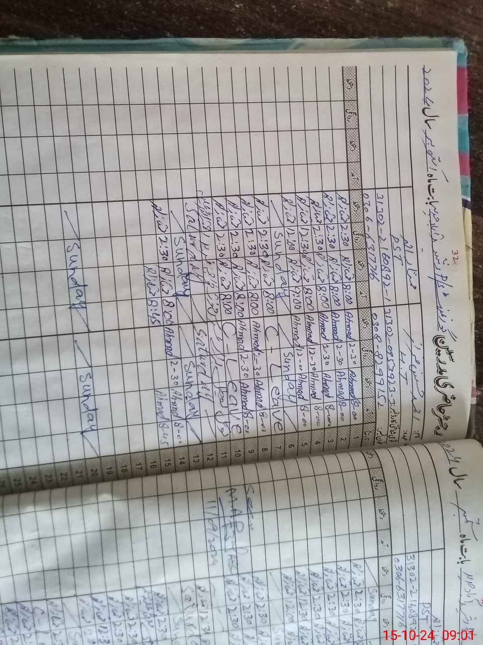 | CNIC | Full Name | Designation | R/C | Absence During Last Calender Month |