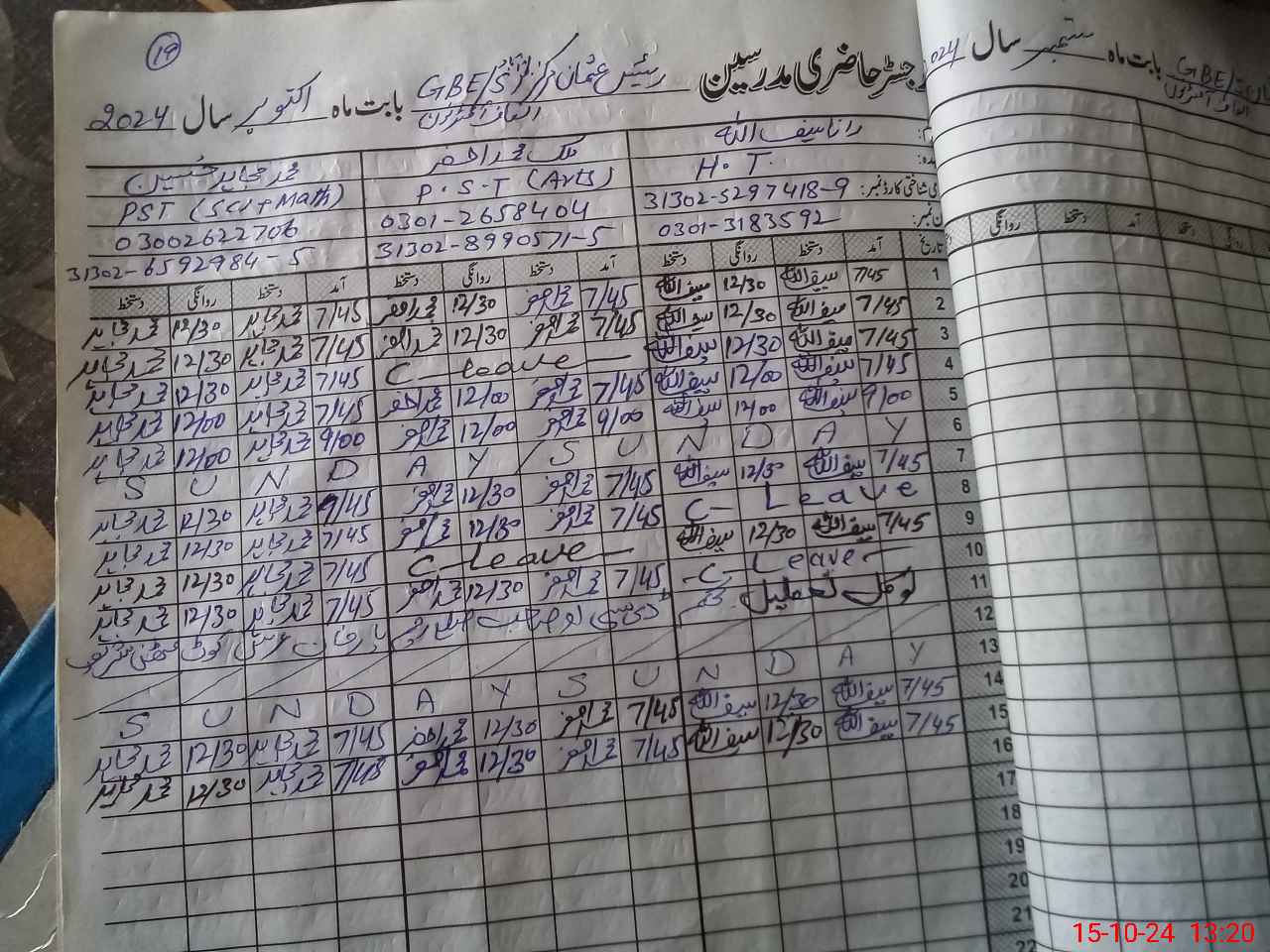 | Name: Ra**** Sa**** Designation: (School Headmaster's/Headmistress's) PST Phone/Cell Number: 03**** |