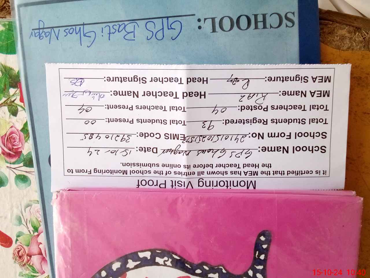 | Attendance Register | Head Teacher | MEA with School | Visit Proof |
