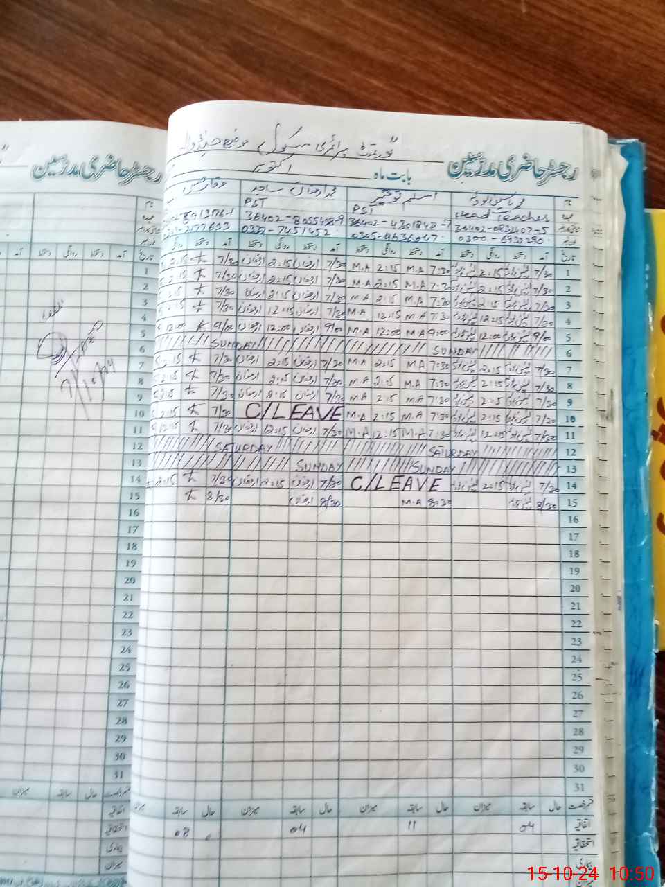 | Leave | Duty | Absent | Maternity | Medical | Ex- Pak |