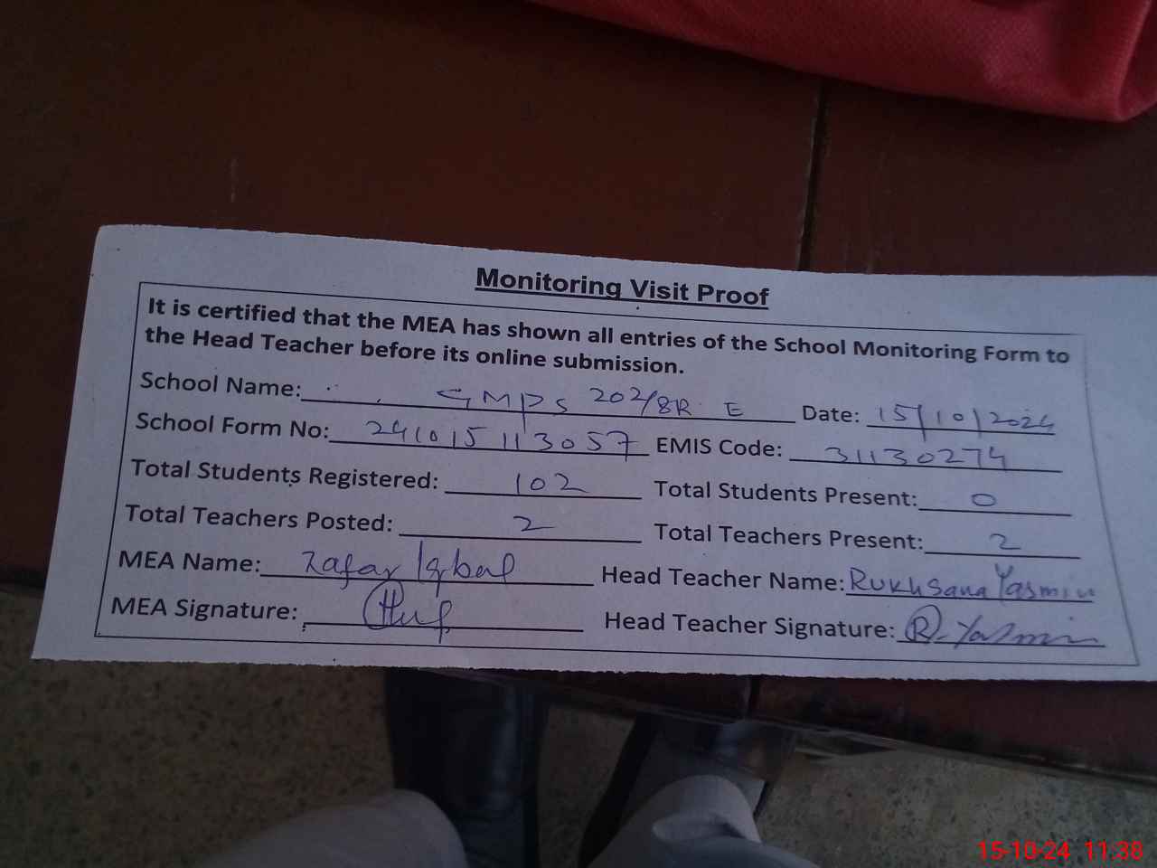 | Certified that this School was Inspected by the Undersigned MEA/DMO Today and the Information Stated Above is as Per Record. | |||||