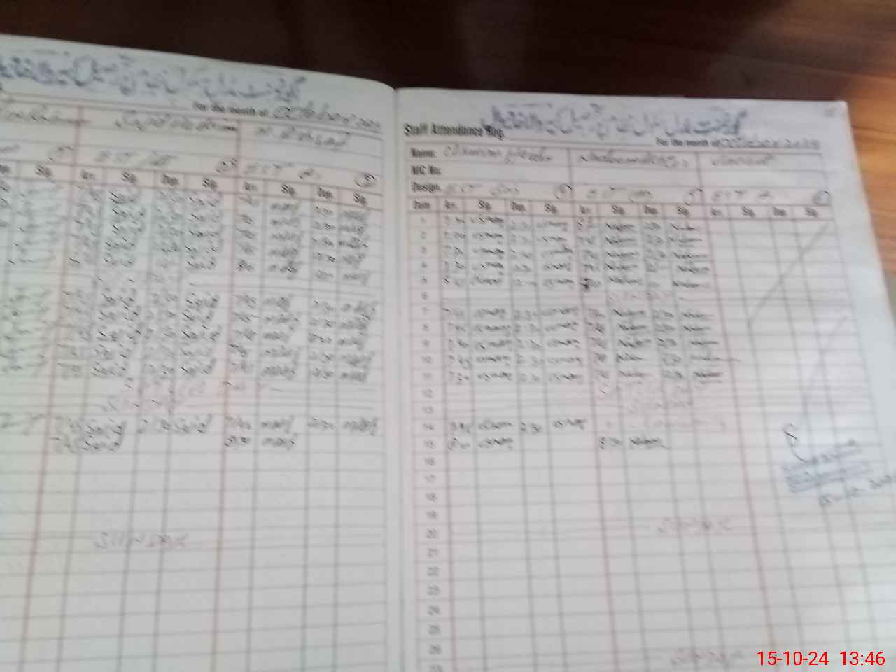 | CNIC | Full Name | Designation | R/C | Absence During Last Calender Month |