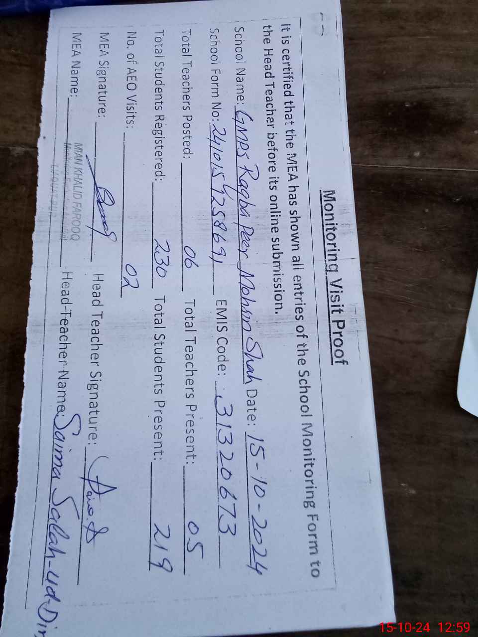 | EMIS Code: 31320673 | Name of School: GMPS RAQBA PIR MOHSIN SHAH | |||