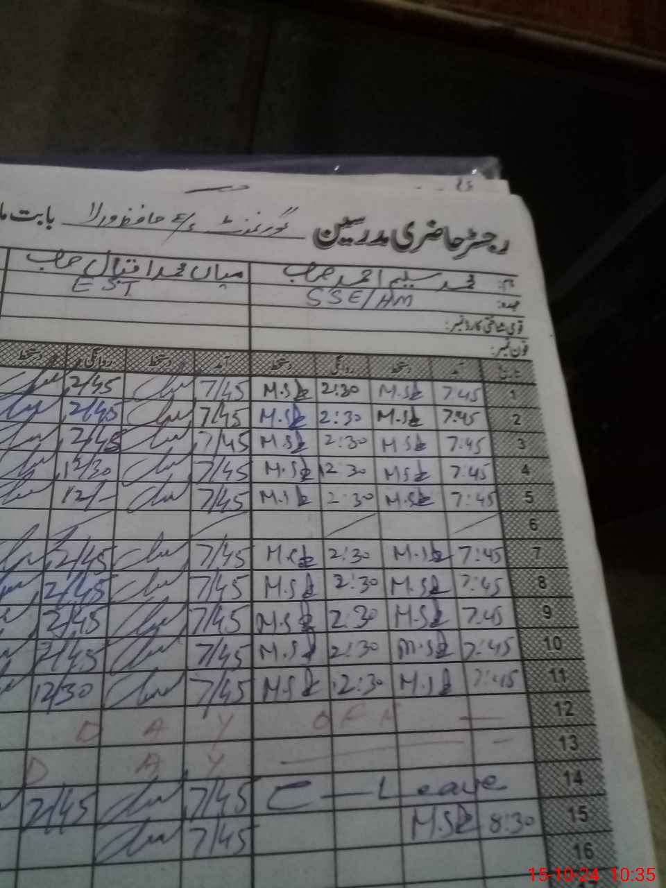 | Leave | Duty | Absent | Maternity | Medical | Ex- Pak |