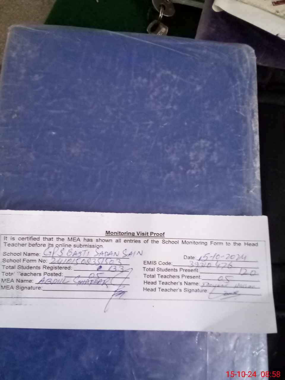 | EMIS Code: 39310476 | Name of School: GPS BASTI SADAN SAIN | |||