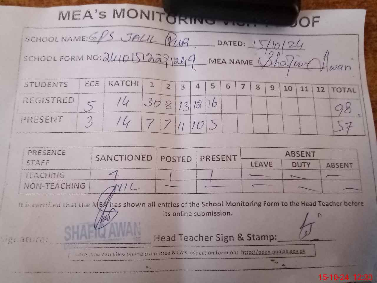 | EMIS Code: 36410266 | Name of School: GPS JALIL PUR, ABDUL HAKIM | |||