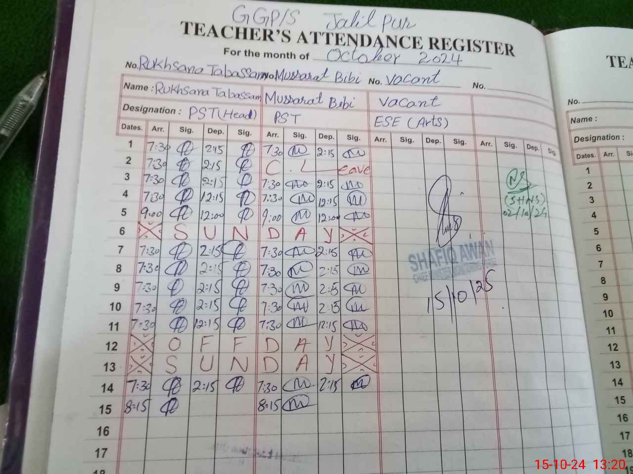 | CNIC | Full Name | Designation | R/C | Absence during last cal. month |