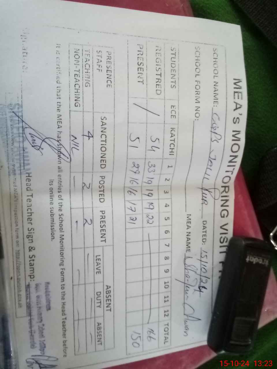 | Attendance Register | Head Teacher | MEA with School | Visit Proof |