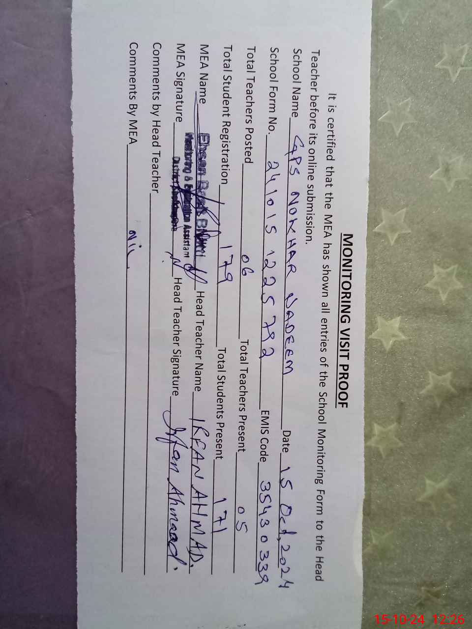 | EMIS Code: 35430339 | Name of School: GPS NOKHAR QADIM | |||