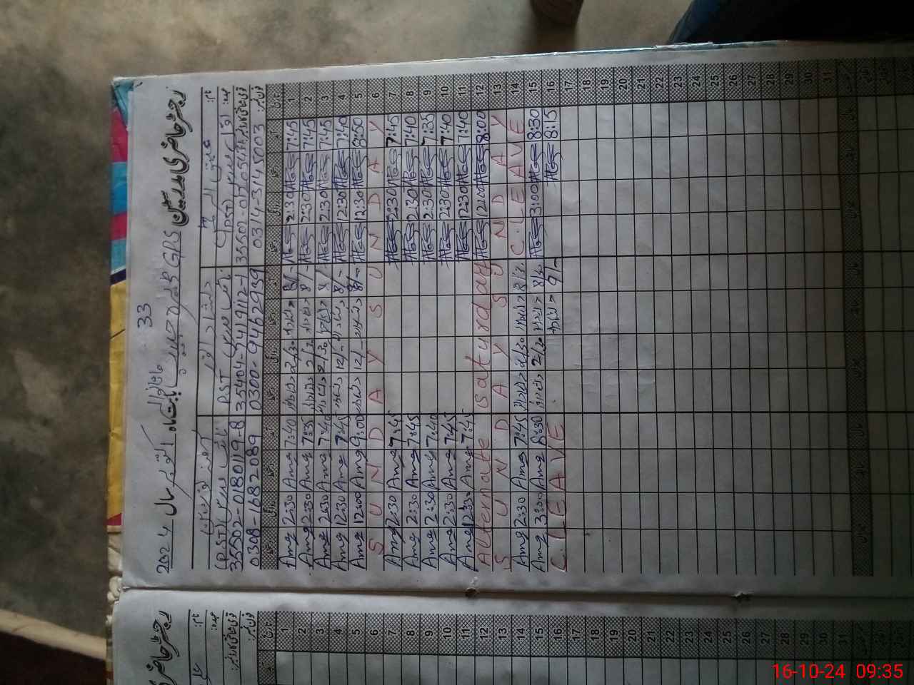 | Leave | Duty | Absent | Maternity | Medical | Ex- Pak |