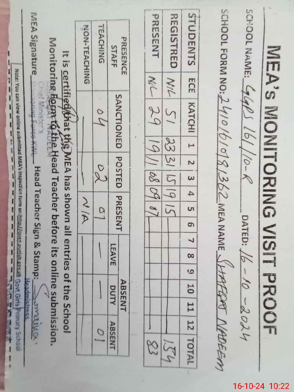 | EMIS Code: 36420379 | Name of School: GGPS 161/10-R, KHANEWAL | |||