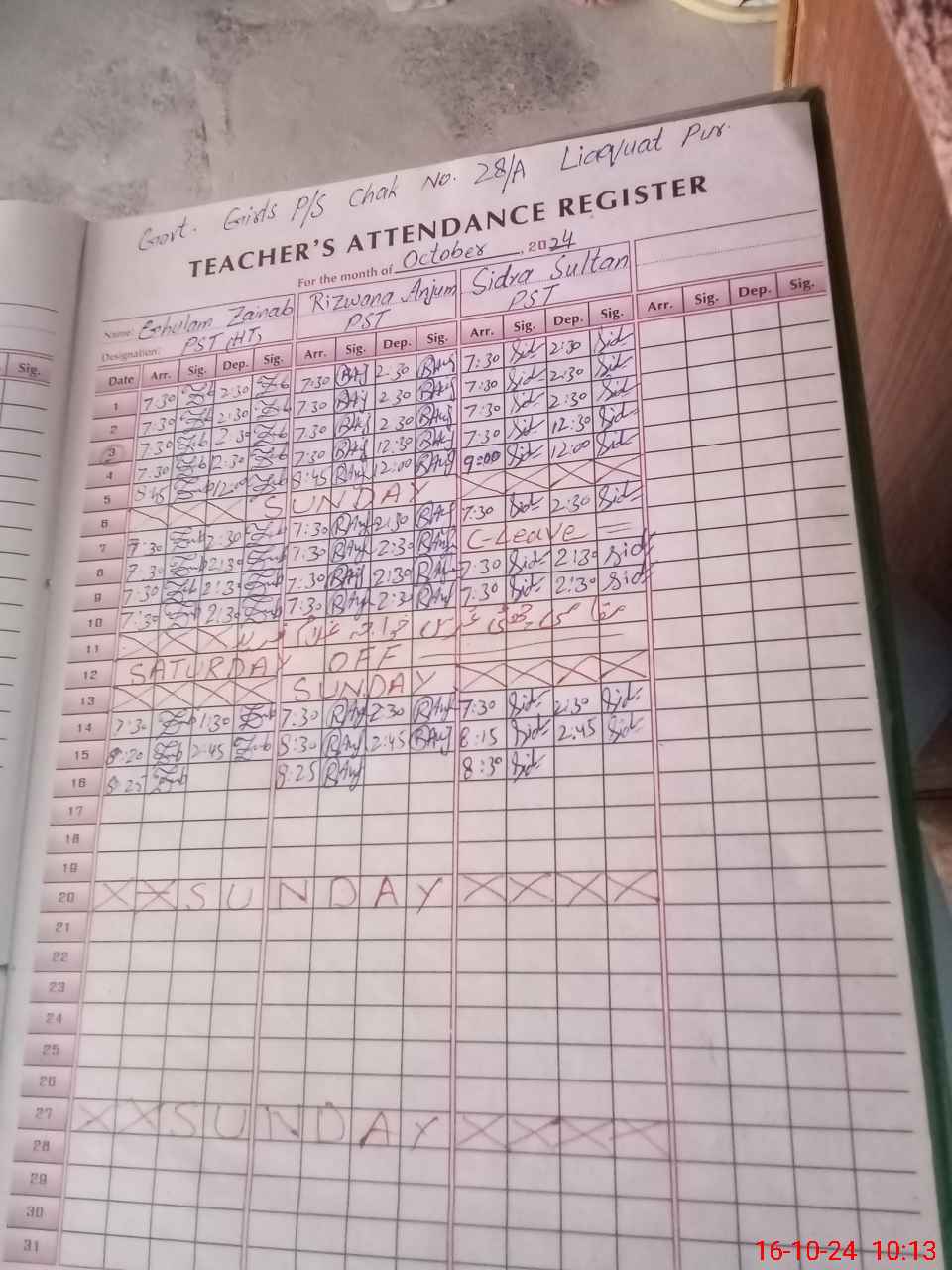 | CNIC | Full Name | Designation | R/C | Absence During Last Calender Month |