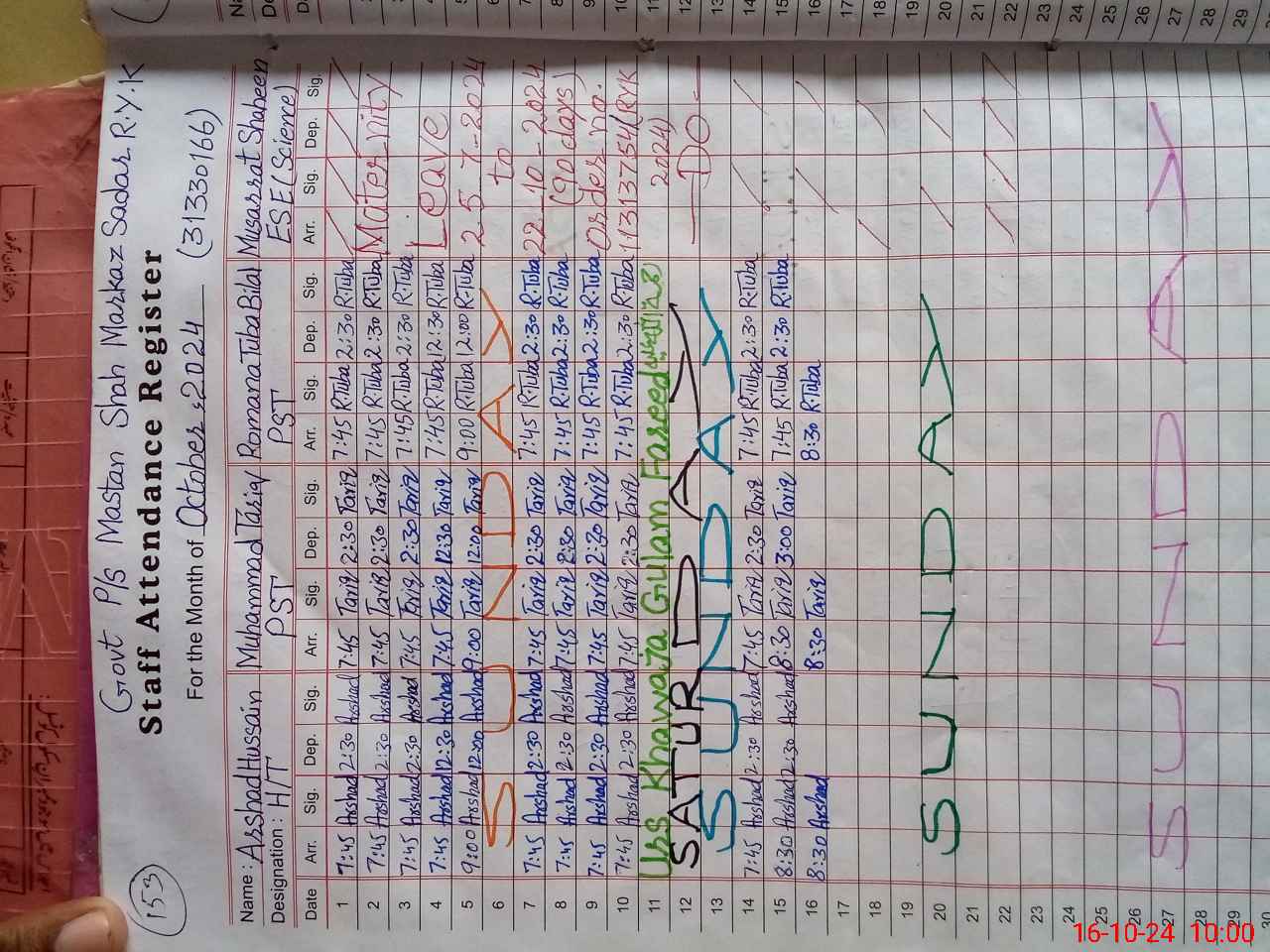 | 31**** | Mu**** Sh**** | PST | Regular | 30 | 0 | 0 | 30 | 0 | 0 | 0 | 0 | 0 | Maternity |