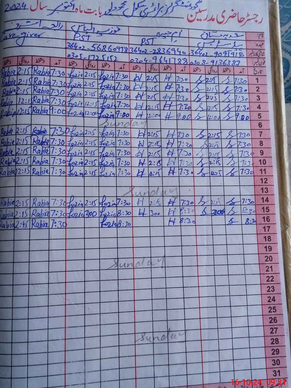 | Name: SA**** MU**** Designation: (School Headmaster's/Headmistress's) PST Phone/Cell Number: 03**** |