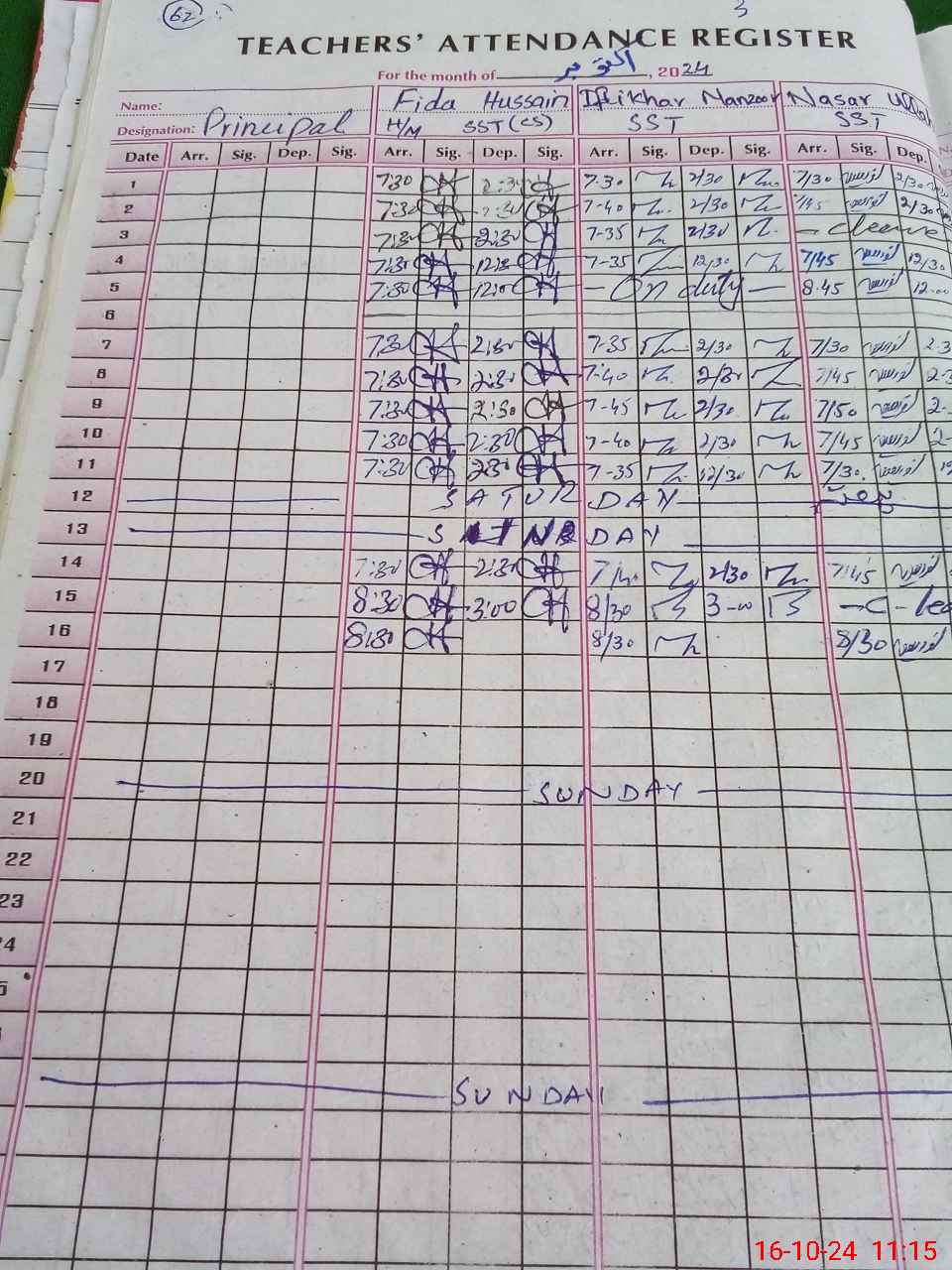 | Name: FI**** HU**** Designation: (School Headmaster's/Headmistress's) S.S.T.(CS) Phone/Cell Number: 03**** |