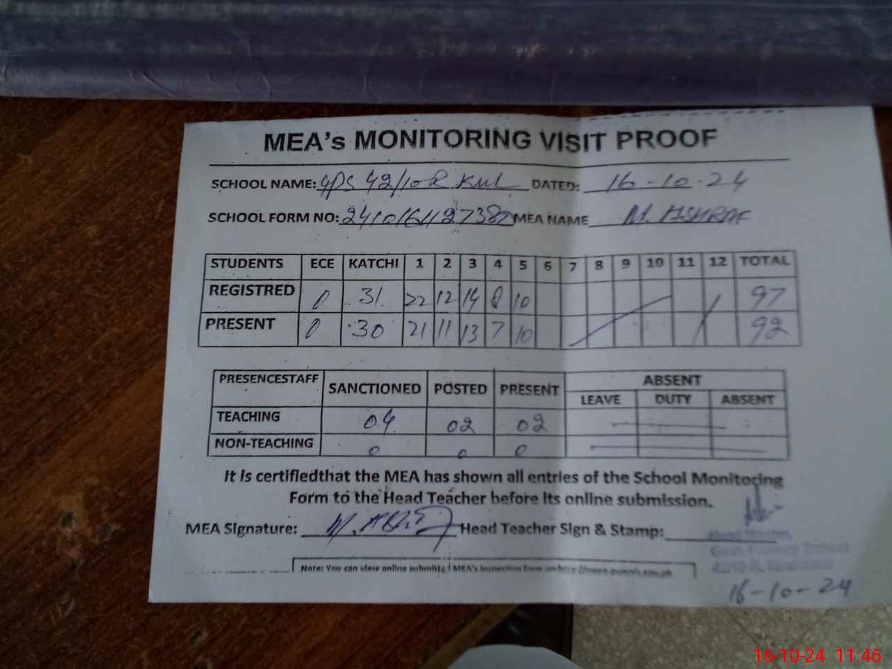 | EMIS Code: 36420156 | Name of School: GPS 42/10-R, KHANEWAL | |||