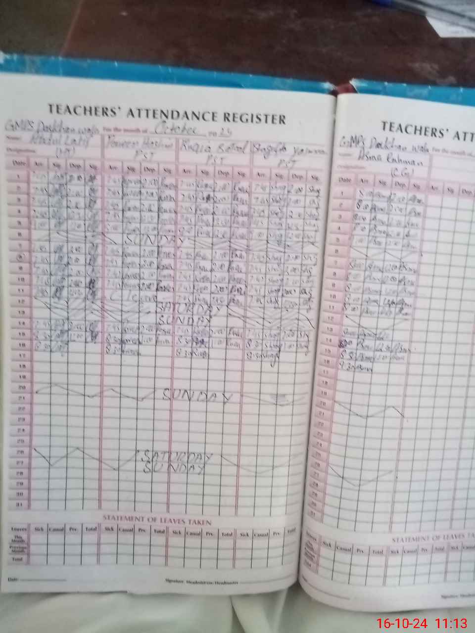 | Leave | Duty | Absent | Maternity | Medical | Ex- Pak |
