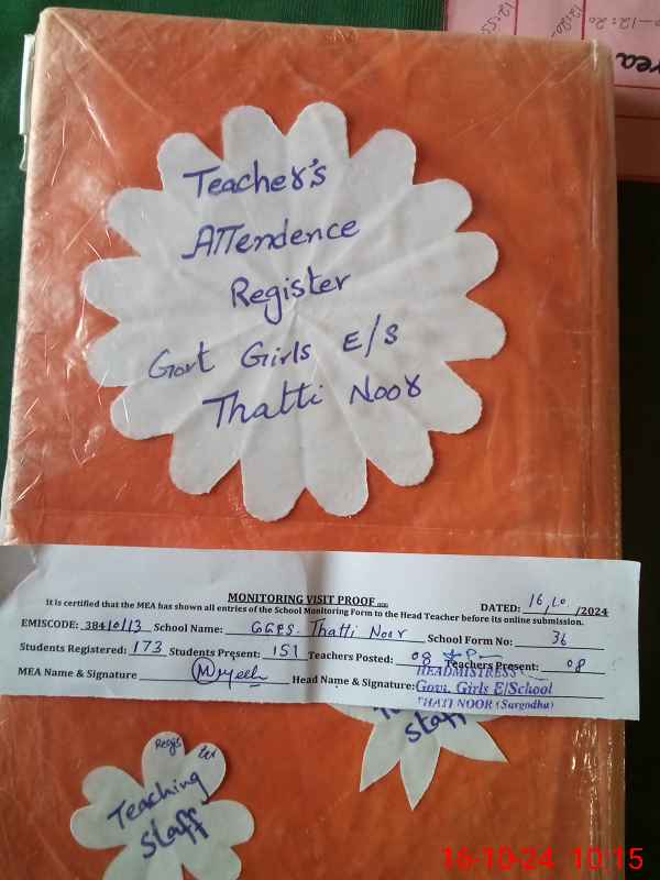 | EMIS Code: 38410113 | Name of School: GGES THATTI NOOR | |||