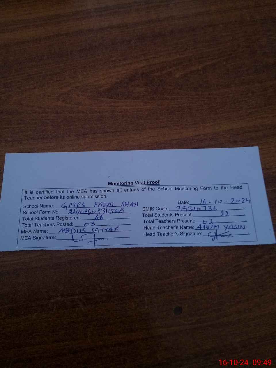 | EMIS Code: 39310736 | Name of School: GMPS CHAK FAZAL SHAH | |||