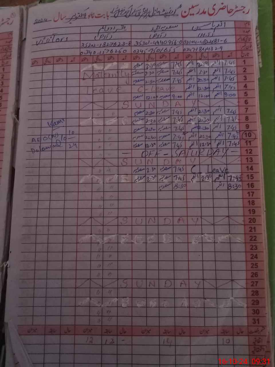 | 35**** | Iq**** Al**** | PST | Regular | 30 | 0 | 0 | 30 | 0 | 0 | 0 | 0 | 0 | Maternity |