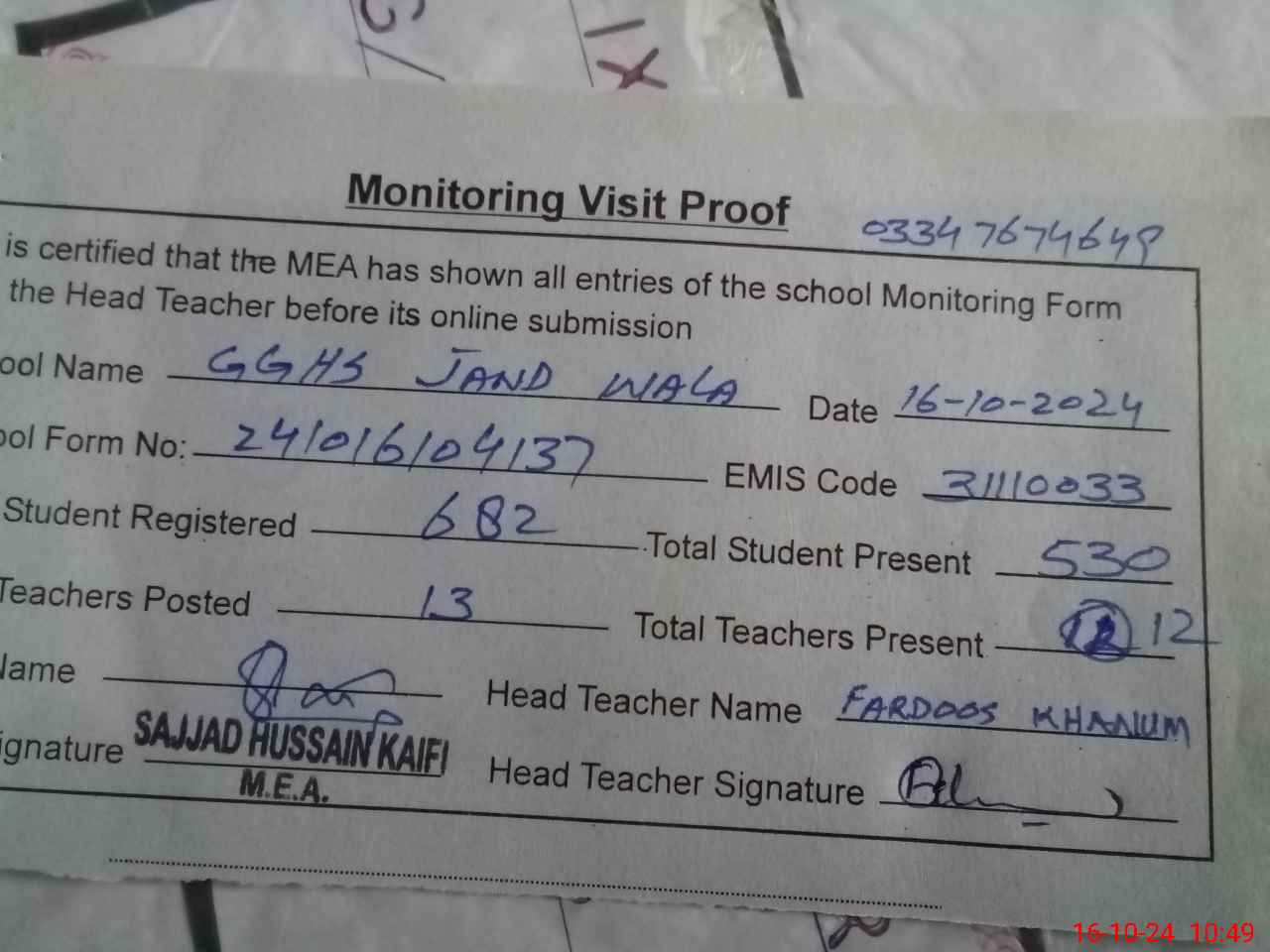 | EMIS Code: 31110033 | Name of School: GGHSS JAND WALA | |||
