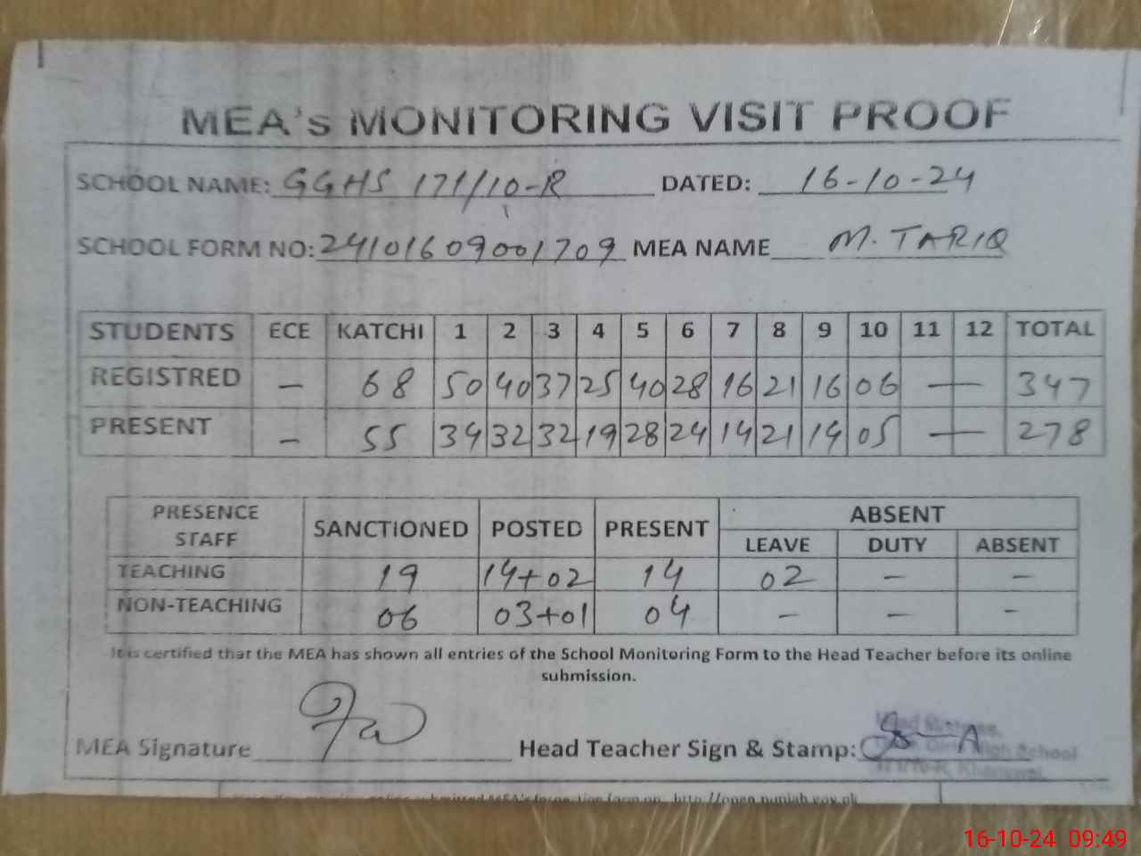| EMIS Code: 36420392 | Name of School: GGHS CMS 171/10-R KHANEWAL | |||
