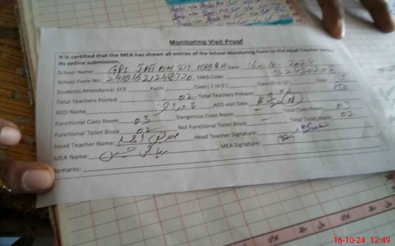 | EMIS Code: 32430208 | Name of School: GPS JATAN DI MAIRH | |||