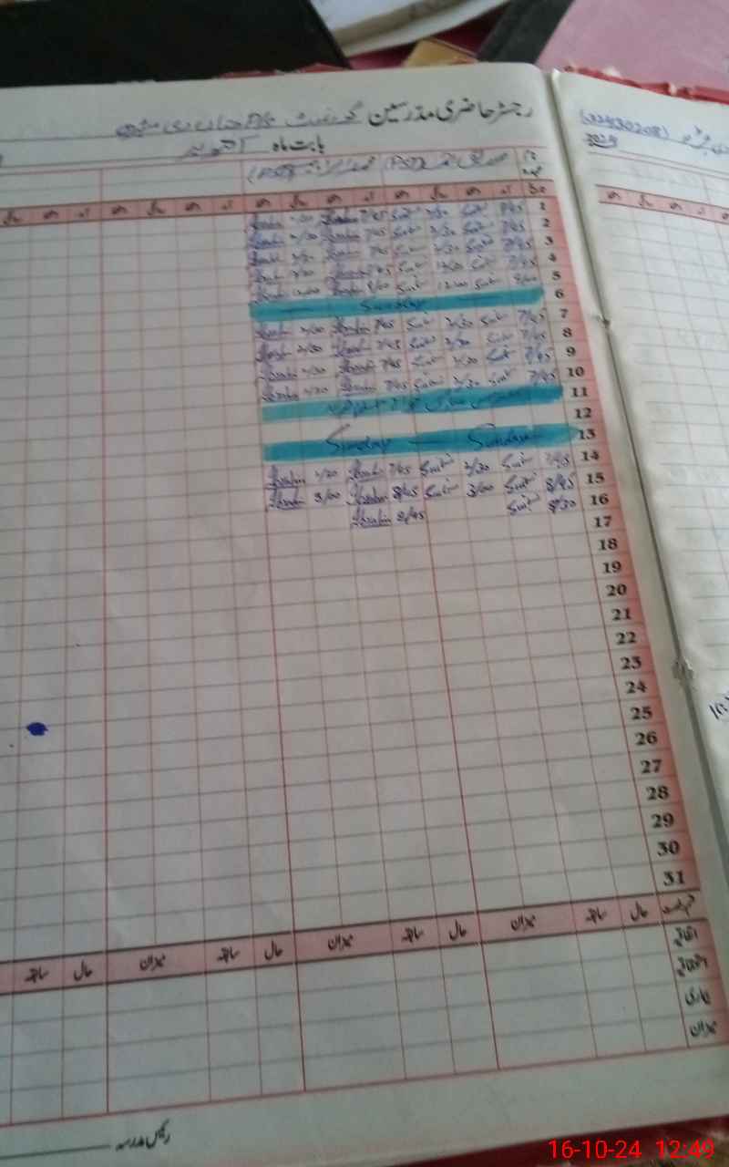 | CNIC | Full Name | Designation | R/C | Absence During Last Calender Month |