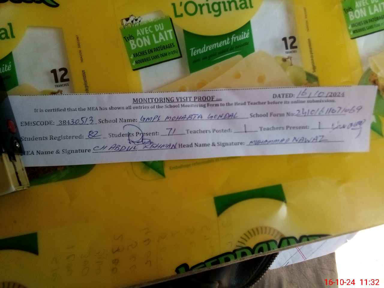 | EMIS Code: 38430513 | Name of School: GMPS MOHABTA GONDAL | |||