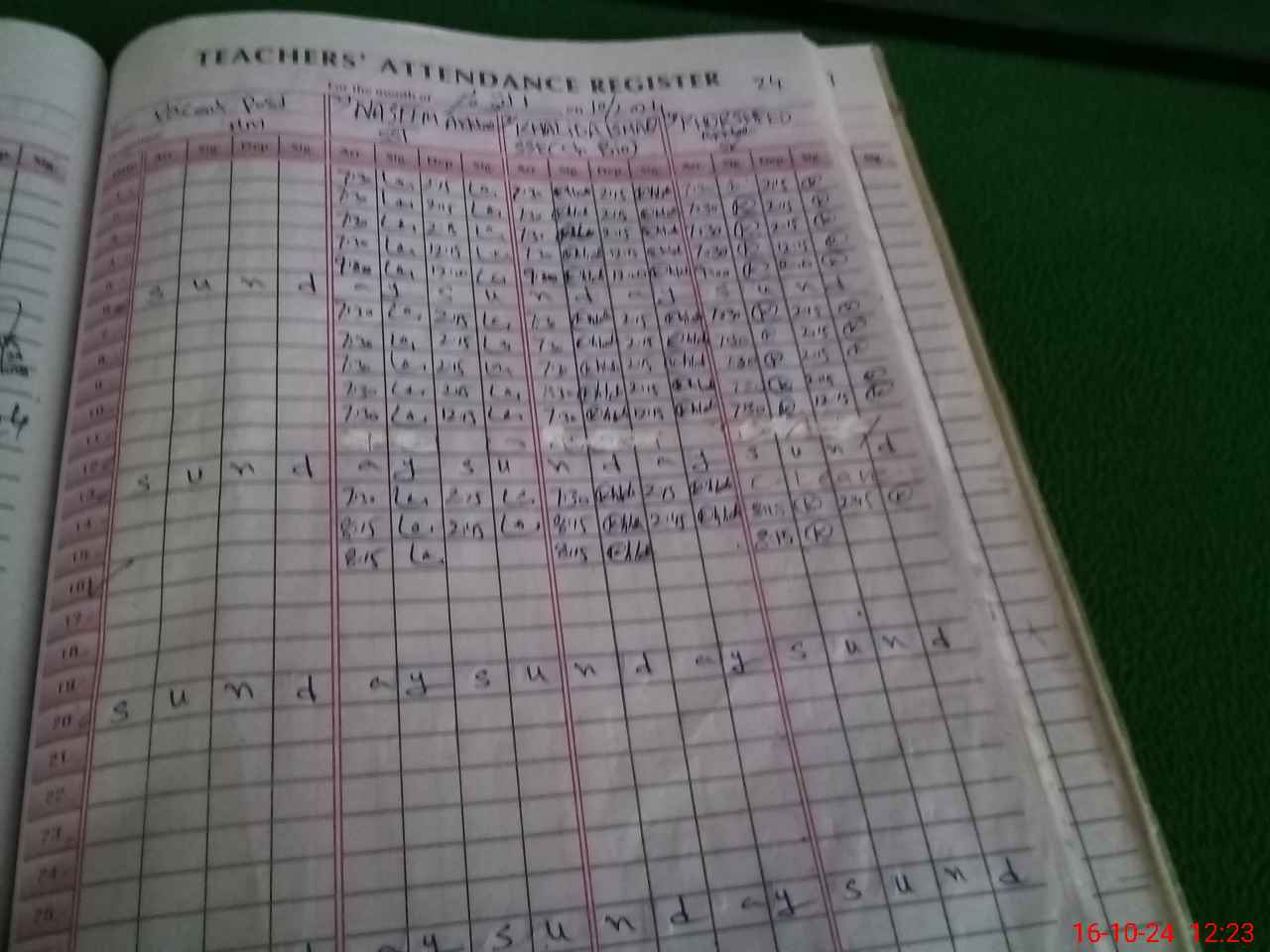 | CNIC | Full Name | Designation | R/C | Absence During Last Calender Month |