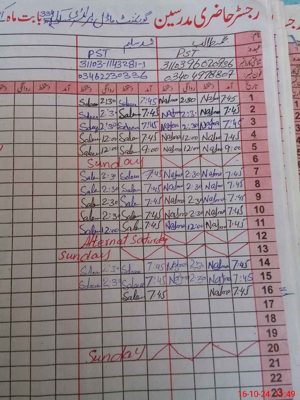 | Name: Na**** Ta**** Designation: (School Headmaster's/Headmistress's) PST Phone/Cell Number: 03**** |