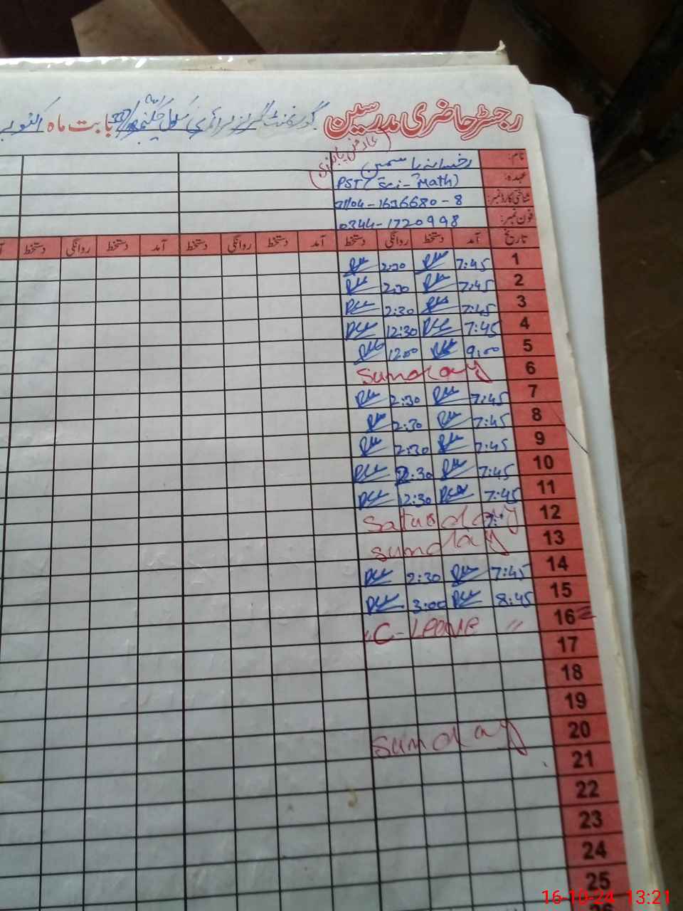 | District: BAHAWALNAGAR | Tehsil: FORT ABBAS | Markaz: FTS-15-FEMALE | Level: Primary | |