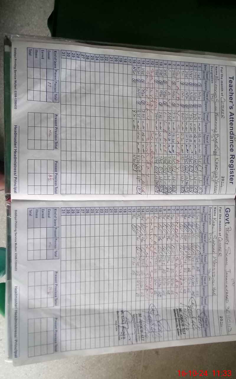 | CNIC | Full Name | Designation | R/C | Absence During Last Calender Month |
