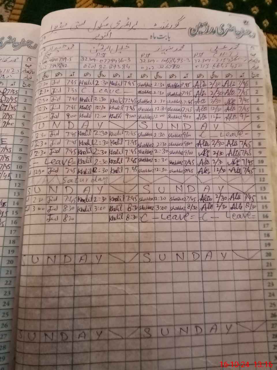 | 32**** | Mu**** Al**** | PST | Regular | 1 | 0 | 0 | 0 | 0 | 0 | 0 | 0 | 1 | Casual |