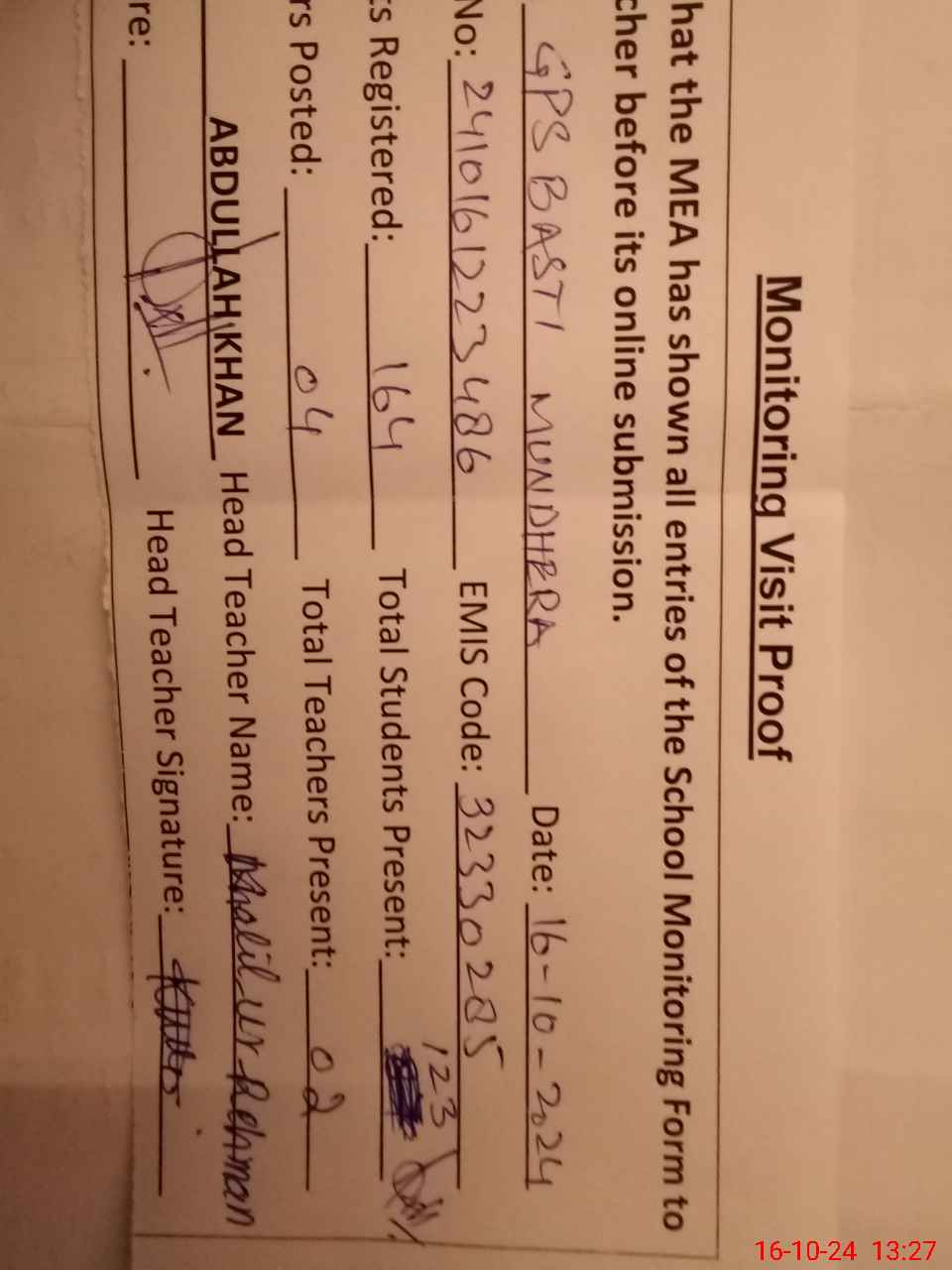 | EMIS Code: 32330285 | Name of School: GPS BASTI MUNDHERA | |||