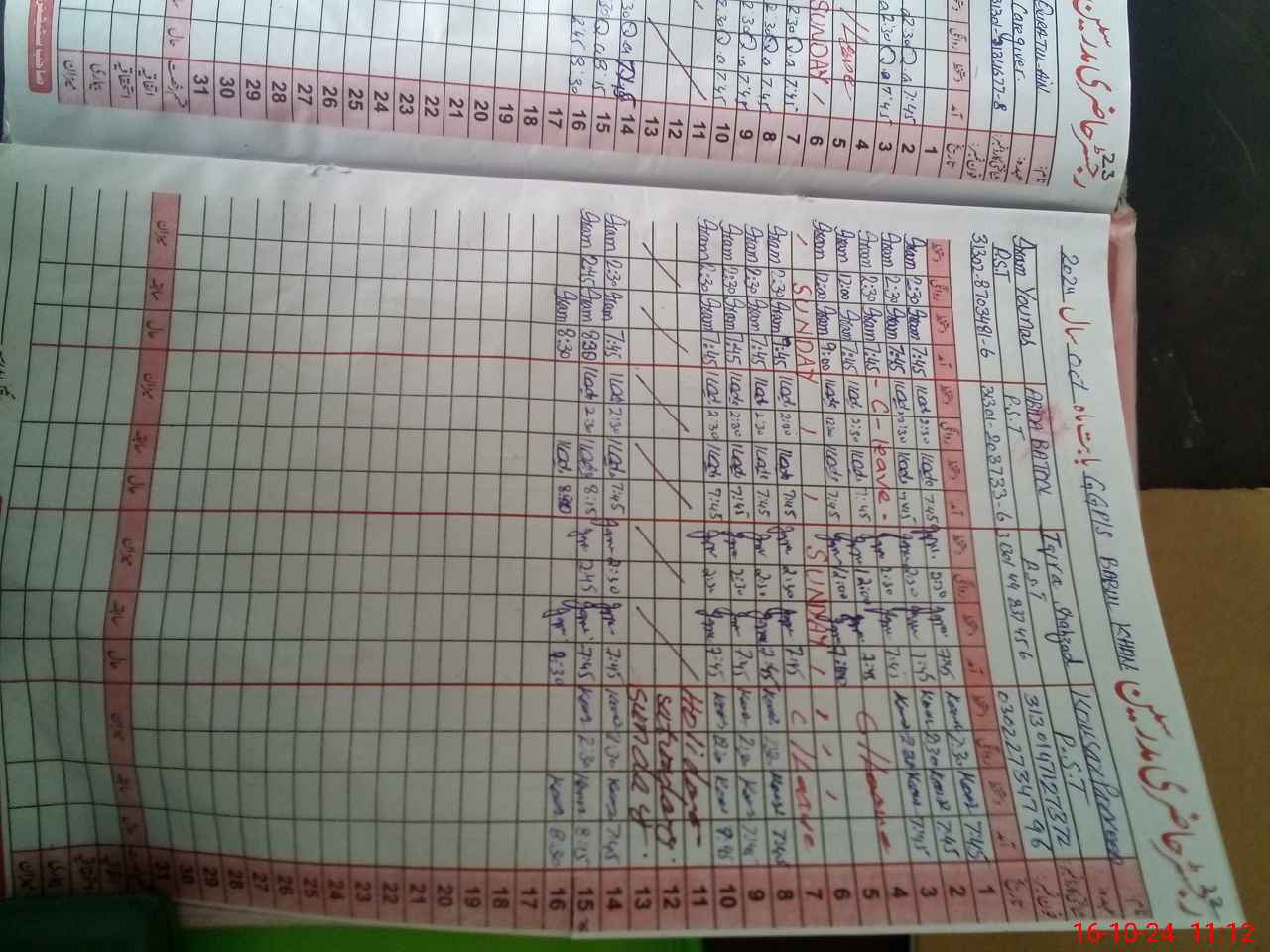 | CNIC | Full Name | Designation | R/C | Absence During Last Calender Month |