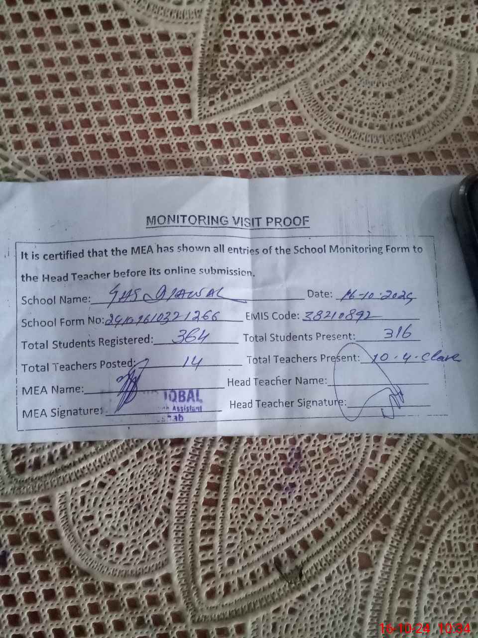 | Certified that this School was Inspected by the Undersigned MEA/DMO Today and the Information Stated Above is as Per Record. | |||||