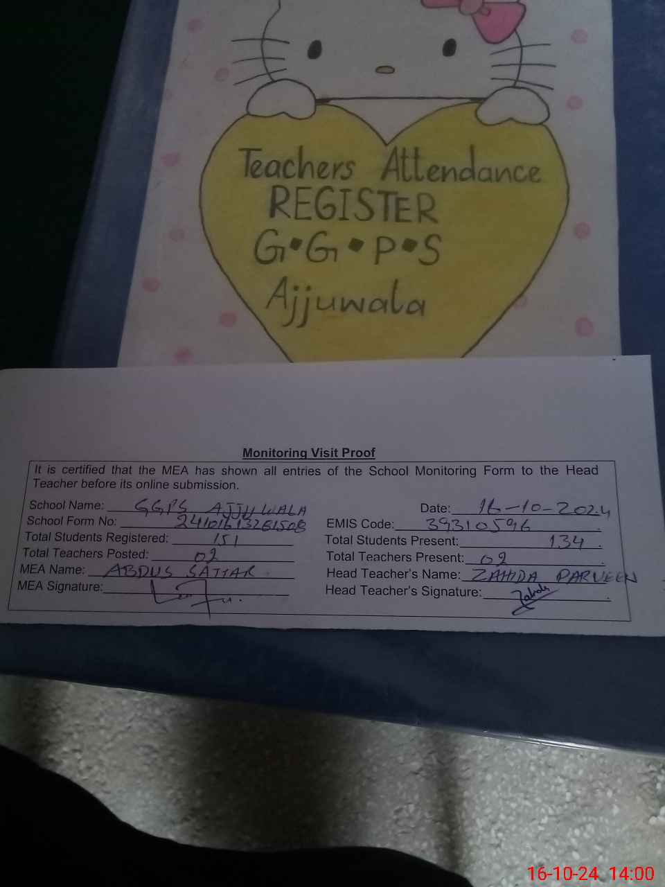 | Attendance Register | Head Teacher | MEA with School | Visit Proof |