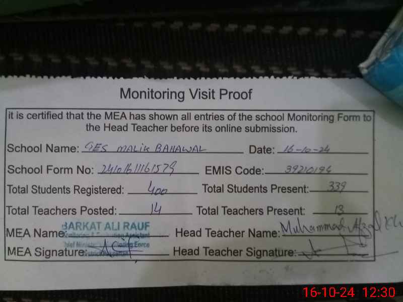 | EMIS Code: 39210194 | Name of School: GES MALIK BAHAWAL PO PAKPATTAN | |||