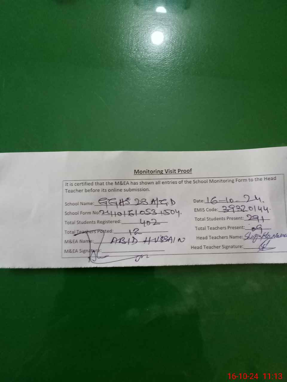 | EMIS Code: 39320144 | Name of School: GGHS 23-A/G.D | |||